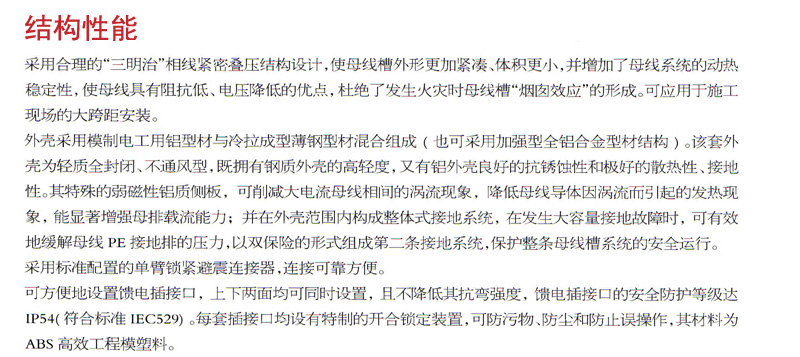 采用合理的“三明治”相线紧密压结构设计,使母线槽外形更加紧凑、体积更小,并增加了母线系统的动热稳定性,使母线具有阻抗低,电压降低的有点,杜绝了发生火灾时母线槽“烟...